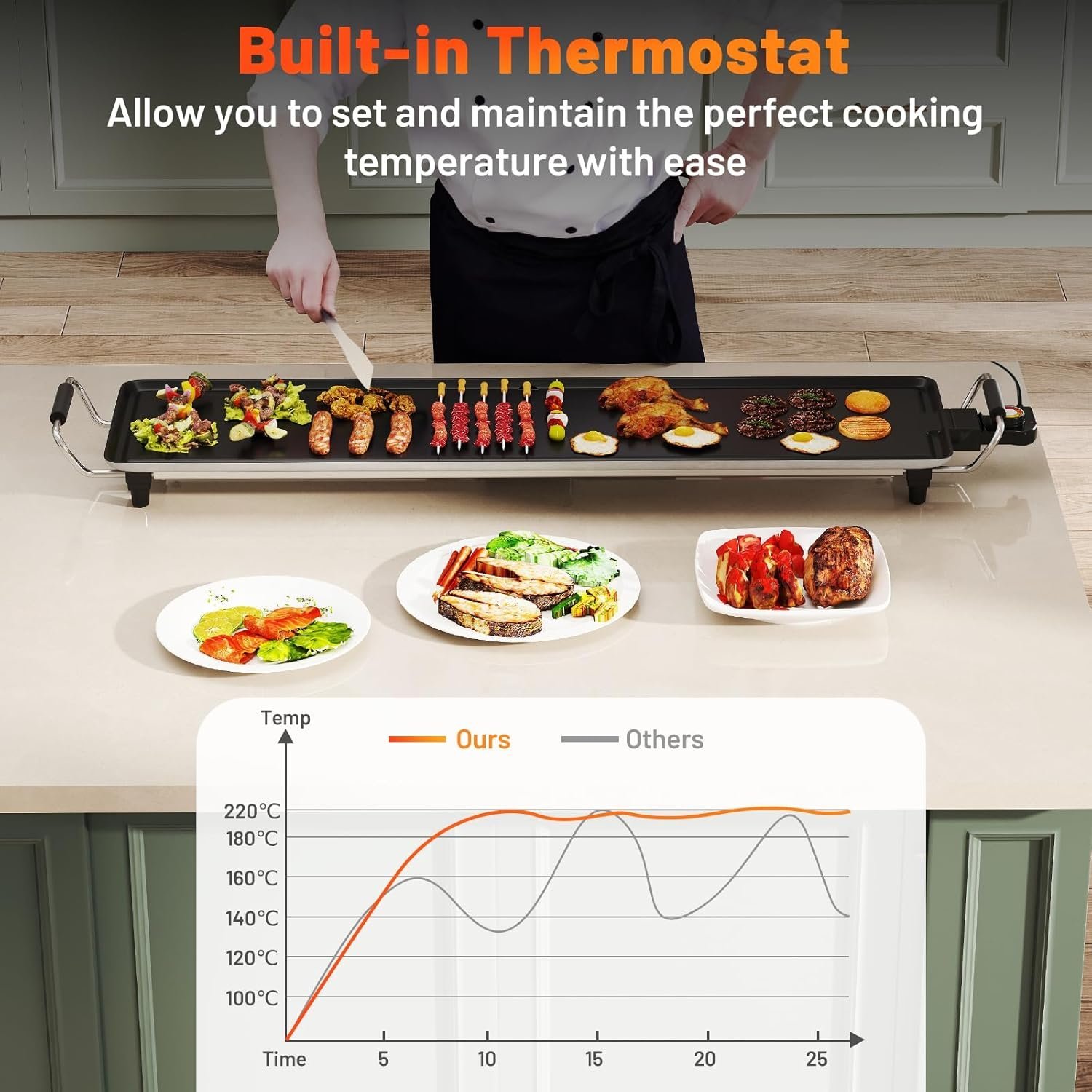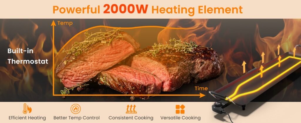 Esta plancha el¨¦ctrica de 90×23 cm tiene un tama?o ideal para preparar comidas para toda la familia en una sola vez.